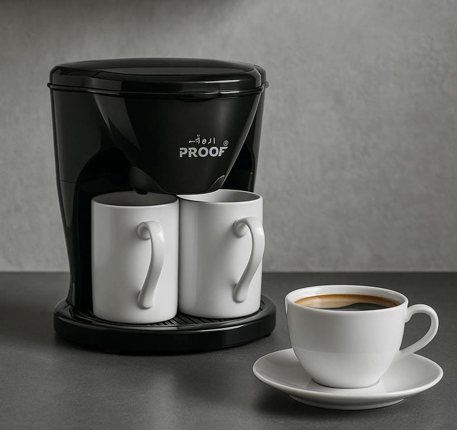 الة تحضير القهوة من شركة بروف, مصنوعة من مواد عالية الجودة تسمح بالاستخدام اليومي, تحتوي على كوبين من مادة برسلان المقاوم للحرارة, كما انها تحتوي على مفتاح تشغيل / ايقاف مع اضاءه, سهلة الاستخدام والتخزين والتنقل والتنظيف, يمكنك مع هذه الالة