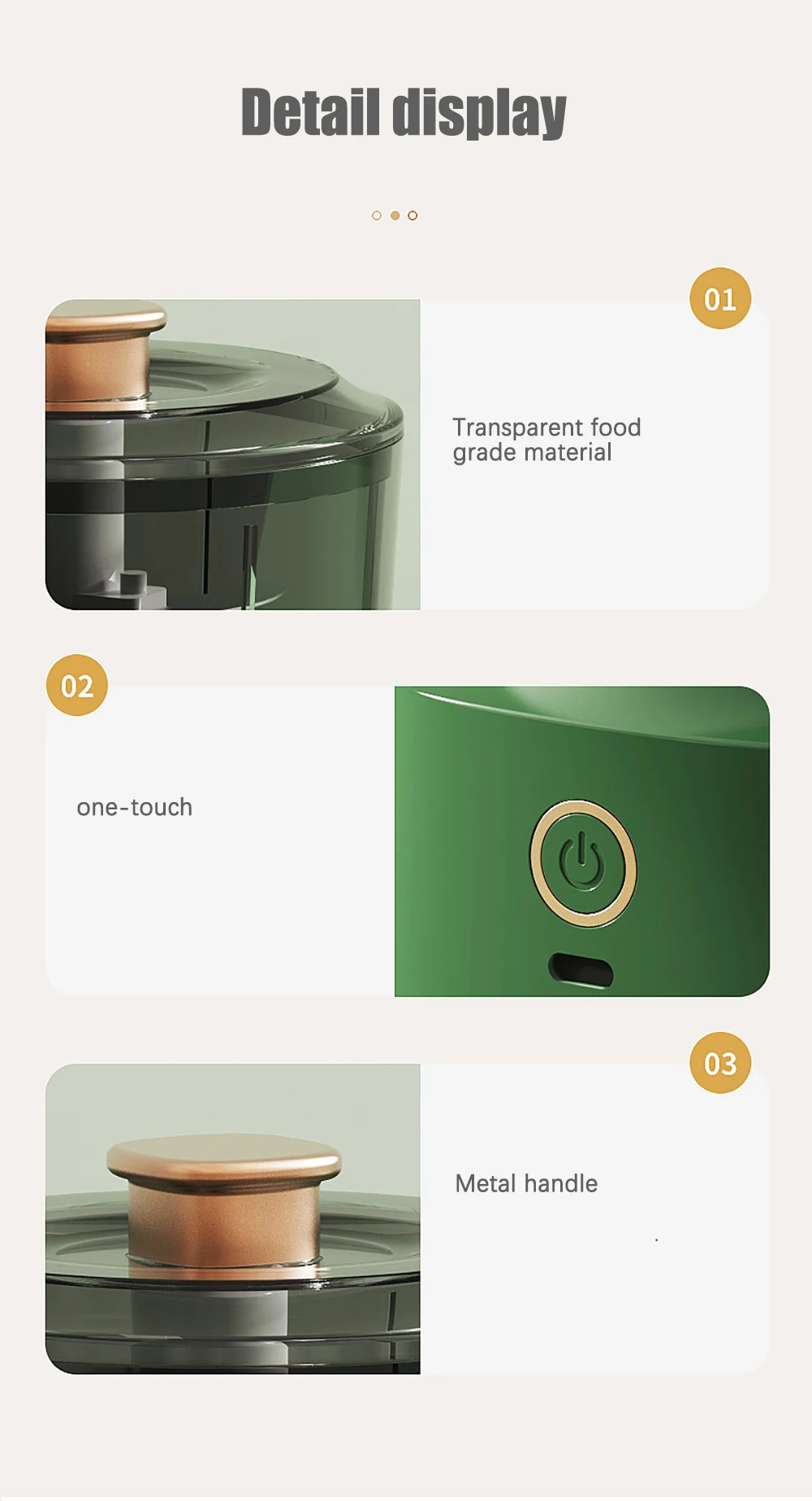 -سهولة التنظيف: ببساطة ضع الطعام أو المكونات في محضرة الطعام الصغيرة يدويًا ، وقفل الغطاء وابدأ بزر واحد لتقطيع الطعام بسرعة. يمكن فصل الوعاء والشفرة لسهولة التنظيف.