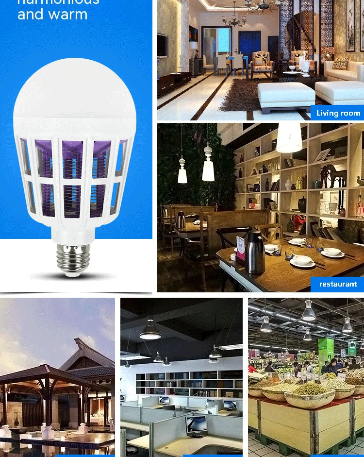 • ضوء LED يجذب ويقتل البعوض :ضوء LED ينبعث أشعة فوق البنفسجية التي تجذب البعوض ، والشبكة الكهربائية تقتلهم على الفور.