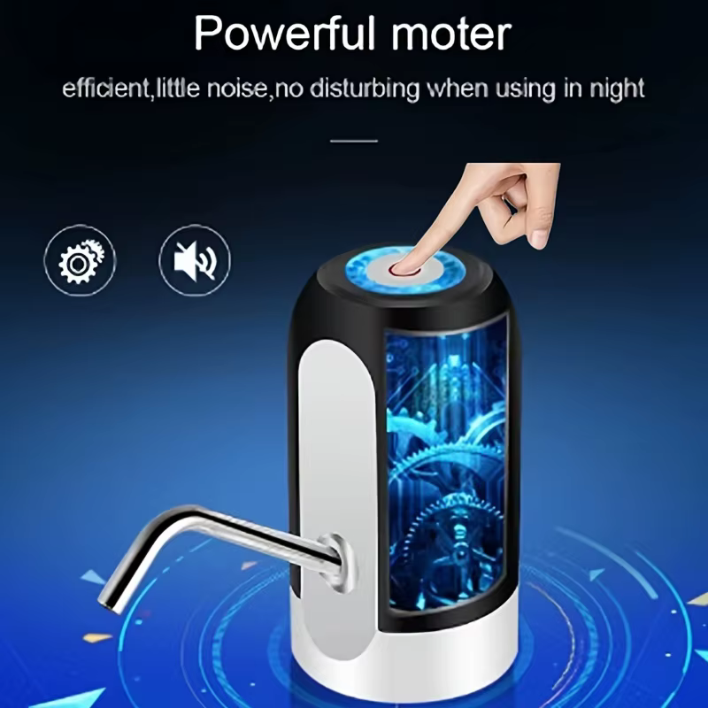 • شحن USB:قم بشحن مضخة زجاجة المياه الخاصة بك بسهولة باستخدام من دون الحاجة إلى بطاريات أو منافذ طاقة.