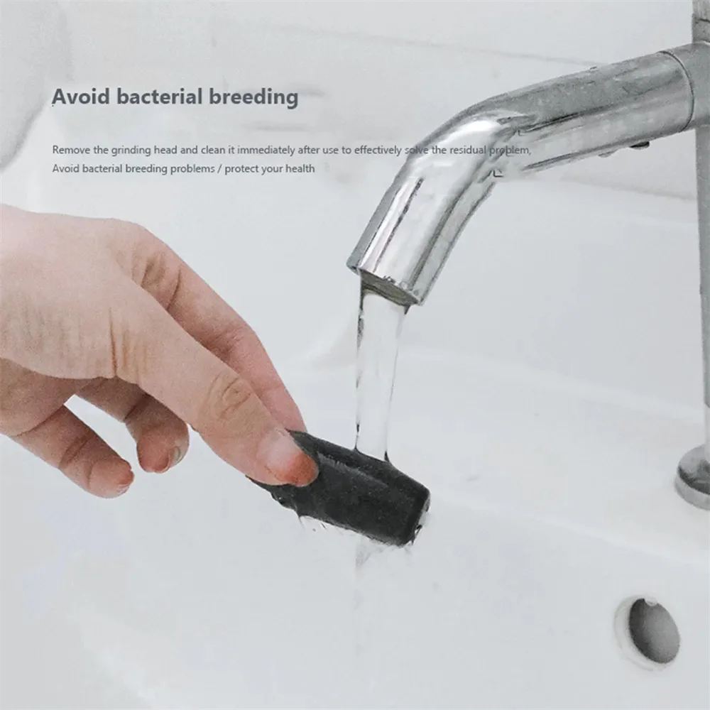 يتضمن الجهاز 2 رؤوس دوارة: بكرة دقيقة للتلميع والعناية اليومية ، والأسطوانة الخشنة لتليين النسيج العنيد والجلد الميت.