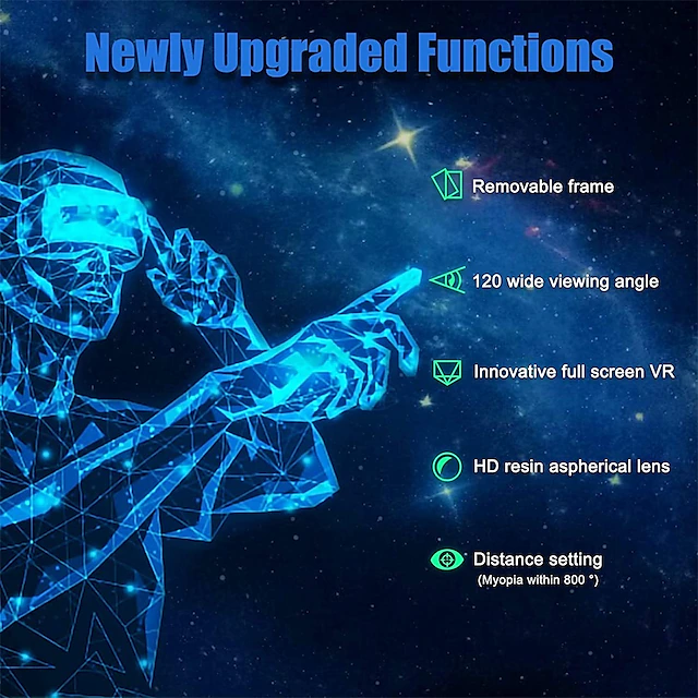 2. استمتع بمجموعة متنوعة من تجارب الواقع الافتراضي مع تطبيقات متعددة وتقنية 3D التي تمت ترقيتها حديثا. توفر النظارات الواقية تحسين HD ودعم ألعاب 3D لتحسين تجارب الأفلام والألعاب.